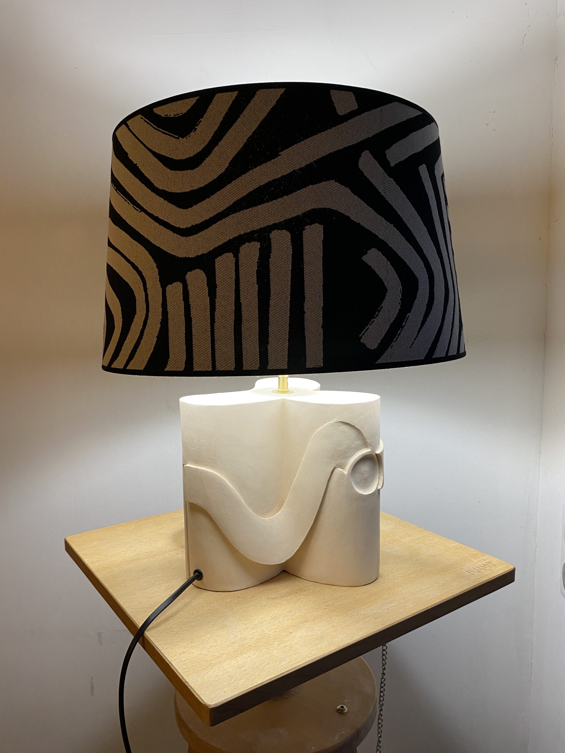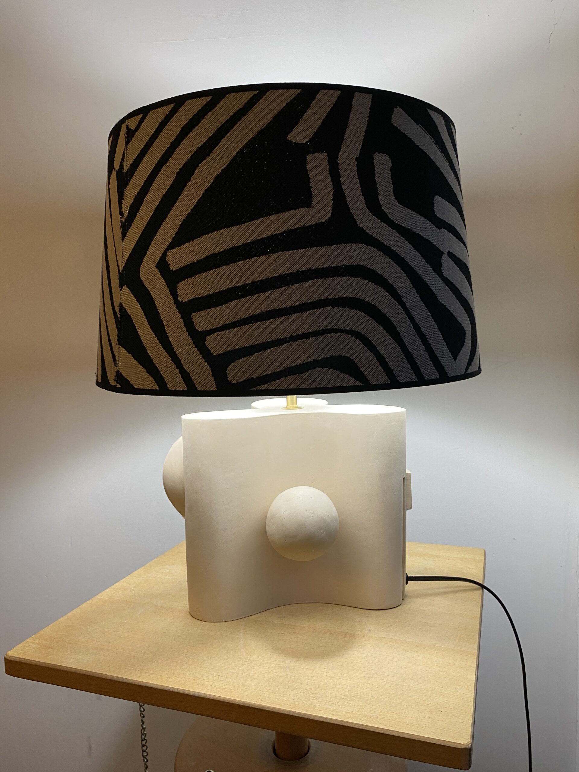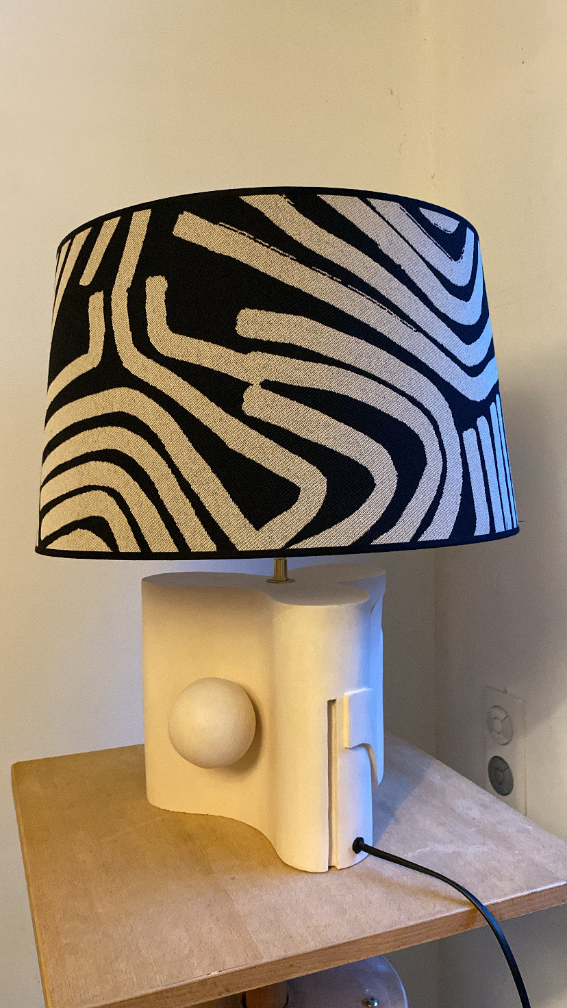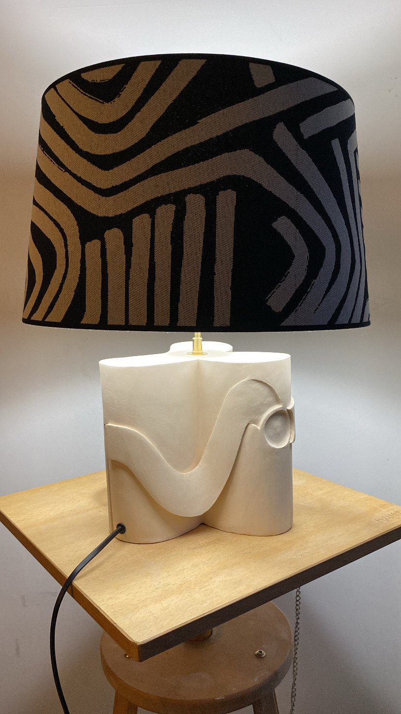 Matériau : Terre cuite patinée, abat jour
