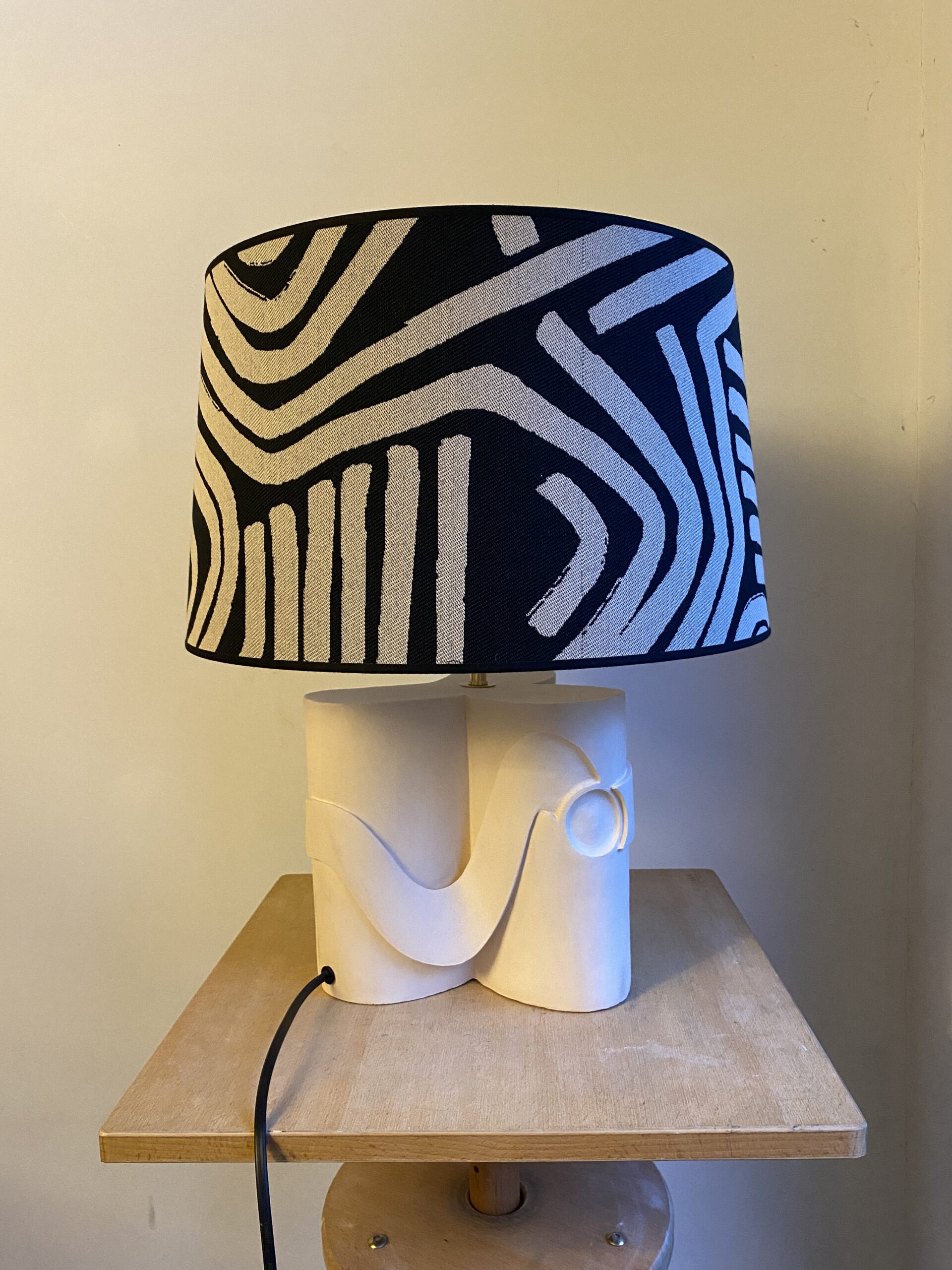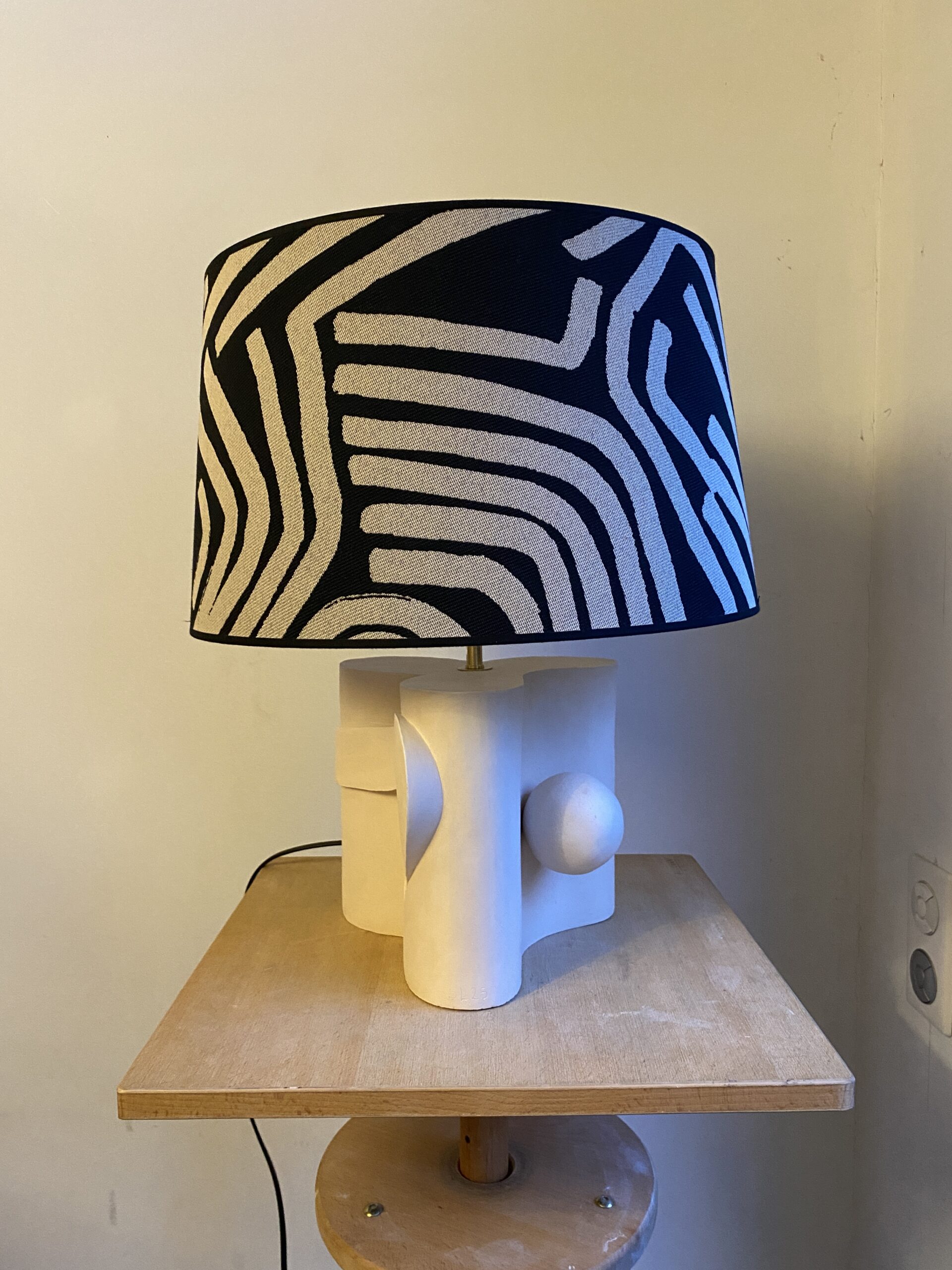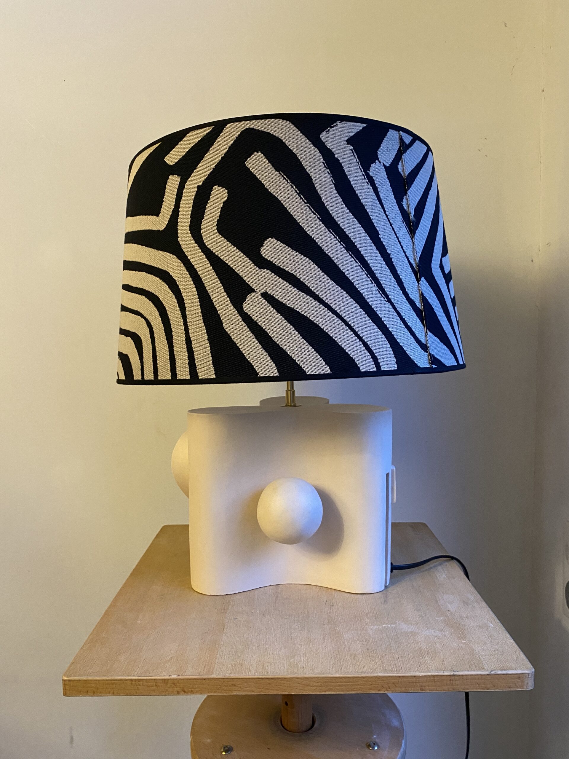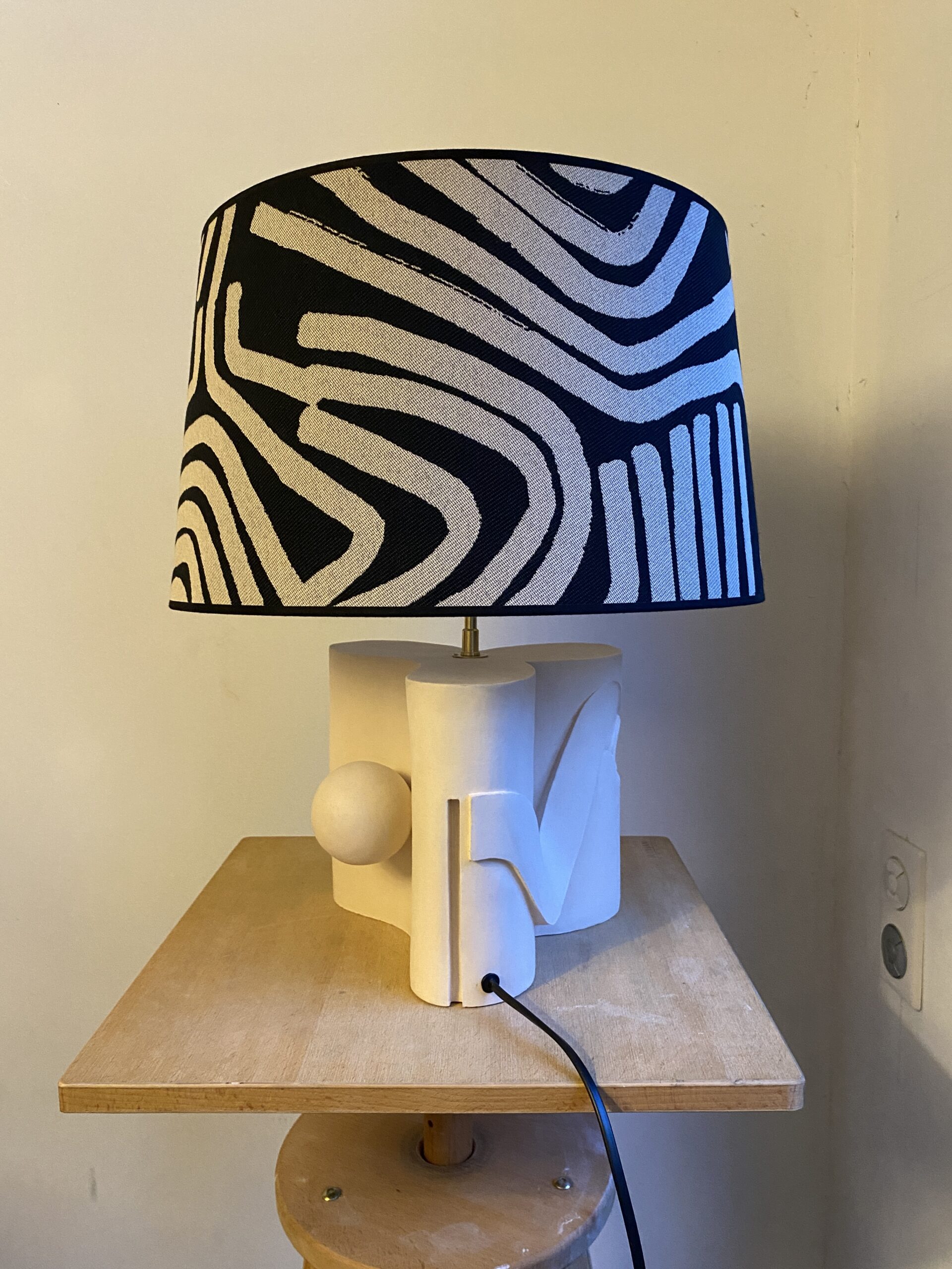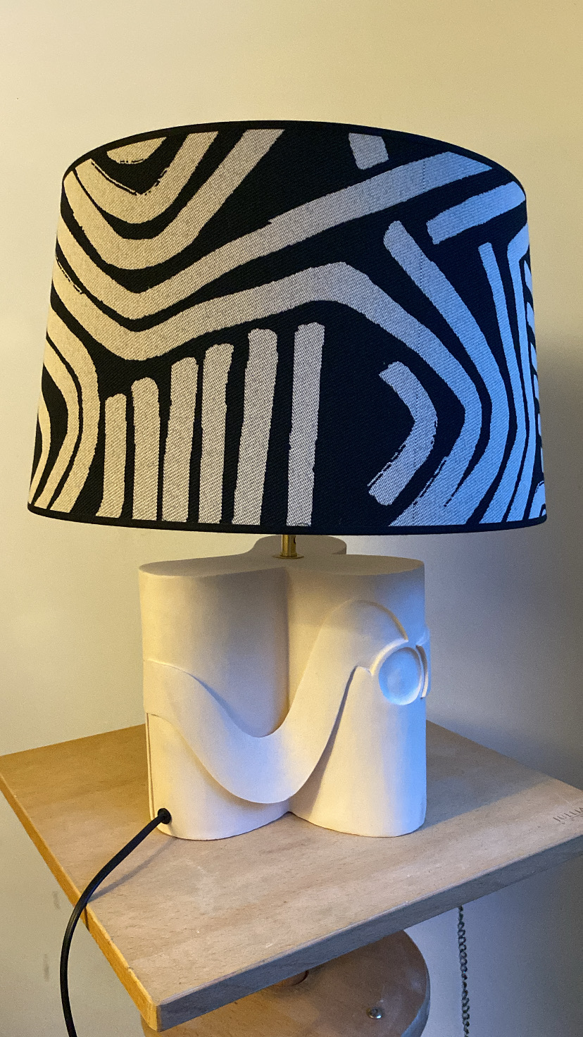 Matériau : Terre cuite patinée, abat jour